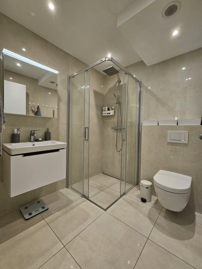 – 1 salle de douche équipée avec cabine de douche, WC et lavabo